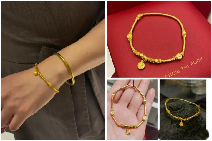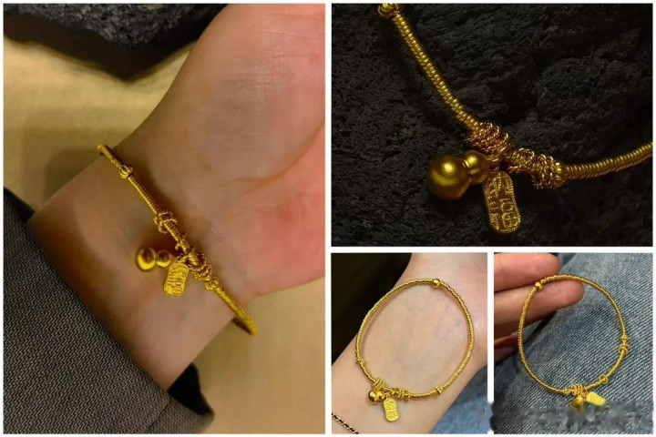 @福宝:天呐~这是什么神仙手链!本以为碎金手链已经很美了,结果看到这条藏蕴黄金盘缠手链直接走不动道。了解后才知道是近年来很火的一款,手链主要由盘缠珠+mini小福牌组成,整体层次丰富。