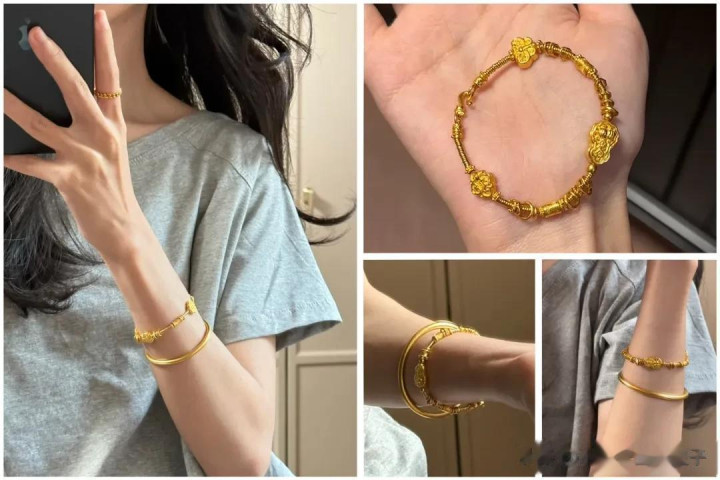 ps:叠戴这个古法素圈黄金手镯简直完美!